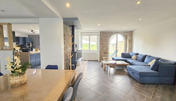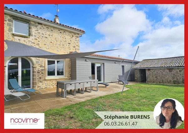 Située à 5 minutes de Cholet et de Maulévrier, cette belle maison de plus de 120 m2, entièrement rénovée alliant le charme de la pierre à la modernité, offre un cadre de vie paisible. Exposée plein sud, elle est implantée sur un terrain de plus de 2 500 m2 avec une vue sur la campagne environnante. Le séjour spacieux et lumineux, équipé d'un poêle à bois, s'ouvre sur l'espace extérieur. La cuisine semi-ouverte, aménagée et équipée, avec îlot central, est également très lumineuse. L'espace nuit comprend deux chambres ainsi qu'un bureau pouvant servir de troisième chambre. Une salle d'eau moderne et une lingerie complètent l'ensemble. Les combles, actuellement non aménagés, offrent un potentiel d'agrandissement supplémentaire. À l'extérieur, vous profiterez d'un terrain de plus de 2 500 m2, d'un garage et d'une petite grange. Un cadre idéal pour ceux qui recherchent la tranquillité tout en étant à proximité des commodités ! BIEN RARE A NE PAS MANQUER!!!! AUCUN TRAVAUX A PREVOIR. Les informations sur les risques auxquels ce bien est exposé sont disponibles sur le site Géorisques : http://www.georisques.gouv.fr Pour plus d'informations n'hésitez pas à contacter votre conseillère NOOVIMO Stéphanie BURENS par téléphone au 06 03 26 61 47 ou par mail: sburens@noovimo.fr. Honoraires: 3.8% sur un bien de 280 260EUR honoraires inclus. Honoraires à la charge de l'acquéreur. Nos honoraires sont consultables sur : www.noovimo.fr. Numéro de dossier : SBS-0022153 - Votre agent indépendant Noovimo inscrit au RSAC d'Angers No 848 378 832. - Annonce rédigée et publiée par un Agent Mandataire 1 - Annonce rédigée et publiée par un Agent Mandataire -