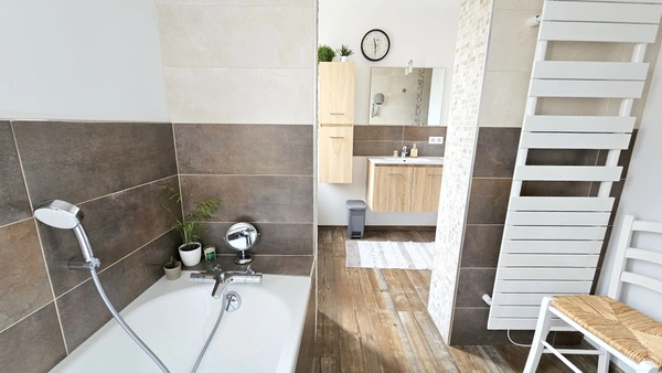 Votre future maison à Vezins : rénovée, prête à vivre et disponible pour un nouveau projet de vie. Stéphanie BURENS vous propose cette maison de bourg d'environ 166 m2 située à Vezins, à seulement 15 minutes de Cholet. Entièrement rénovée en 2019, cette maison offre aujourd'hui un cadre de vie agréable et prêt à accueillir ses nouveaux propriétaires, sans travaux à prévoir. Dès l'entrée, vous découvrirez la partie principale de la maison, développée sur deux niveaux. Elle s'ouvre sur une agréable pièce de vie avec cuisine aménagée et équipée, complétée par une lingerie. L'étage accueille trois chambres ainsi qu'une salle de bain avec baignoire et douche, offrant un espace nuit confortable pour une vie de famille. Vous profiterez également d'un jardin privatif et d'un garage, des atouts appréciables pour une maison située en centre-bourg. Au deuxième étage, un appartement d'environ 40 m2 vient compléter l'ensemble. Il comprend une pièce de vie avec cuisine aménagée et équipée, une chambre et une salle d'eau. Cet espace indépendant pourra facilement s'adapter à différents projets : accueillir famille ou amis, créer un espace pour un adolescent, un bureau ou encore un lieu de télétravail. La maison est équipée d'un chauffage électrique à inertie, de ballons d'eau chaude récents, de menuiseries en double vitrage et bénéficie d'une bonne isolation. Aucun travaux à prévoir. DPE : C bonne performance énergétique. Située en plein centre-bourg de Vezins, la maison permet un accès rapide aux commerces de proximité, à l'école primaire et aux services du quotidien, tout en restant à seulement 15 minutes de Cholet.