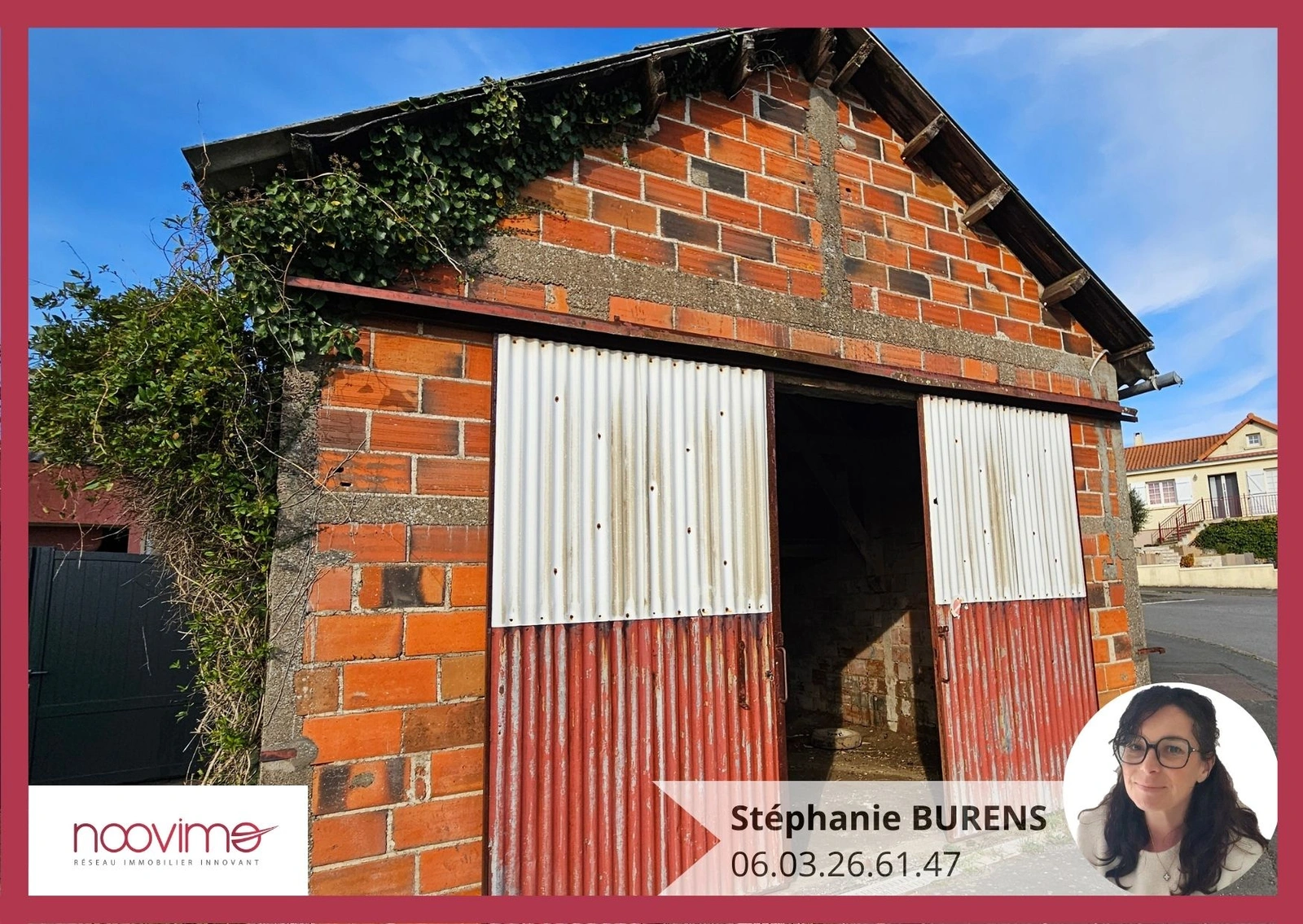 Stéphanie Burens vous propose, en exclusivité, ce hangar de 60 m2 avec un faux grenier de 34 m2, à 5min à pied du centre de Maulévrier. Il est raccordé au réseau d'assainissement. Il ne reste qu'à poser les compteurs pour avoir l'eau et l'électricité qui arrivent devant le local. Un bien rare, UNIQUEMENT pour un projet de garage ou de stockage, il n'est pas possible de le convertir en habitation. À visiter sans tarder ! Les informations sur les risques auxquels ce bien est exposé sont disponibles sur le site Géorisques : http://www.georisques.gouv.fr Pour plus d'informations n'hésitez pas à contacter votre conseillère NOOVIMO Stéphanie BURENS par téléphone au 06 03 26 61 47 ou par mail: sburens@noovimo.fr. Honoraires: 3800EUR sur un bien de 23 800 EUR honoraires inclus. Honoraires à la charge du vendeur. Nos honoraires sont consultables sur : www.noovimo.fr. Numéro de dossier : SBS-0023034 - Votre agent indépendant Noovimo inscrit au RSAC d'Angers No 848 378 832. - Annonce rédigée et publiée par un Agent Mandataire 1 - Annonce rédigée et publiée par un Agent Mandataire -